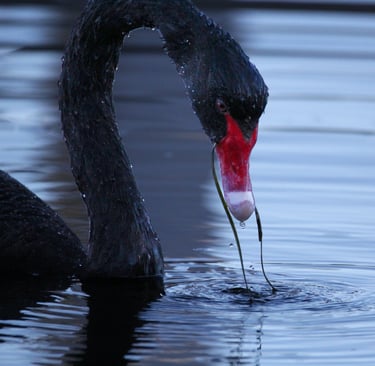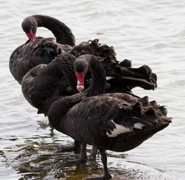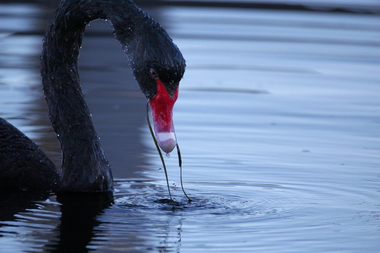Abita laghi, fiumi e zone umide, dove si nutre di piante acquatiche, alghe e occasionalmente piccoli invertebrati. Curiosamente, i pulcini nascono con piumaggio grigio, che diventa nero solo crescendo. Il cigno nero è noto per i forti legami di coppia: spesso monogamo per tutta la vita, con entrambi i genitori impegnati nella cura dei piccoli, che nelle prime settimane possono viaggiare sul dorso dei genitori. I cigni neri sono anche uccelli territoriali e sociali: in natura formano grandi stormi nei periodi di migrazione interna, creando spettacoli scenografici sulle acque australiane. La scoperta del cigno nero nel 1697 ribaltò la convinzione europea che tutti i cigni fossero bianchi, dando origine al celebre concetto di “cigno nero” come evento imprevedibile. La combinazione di eleganza, comportamento sociale complesso e adattabilità ecologica rende il cigno nero uno degli uccelli più emblematici della fauna australiana.